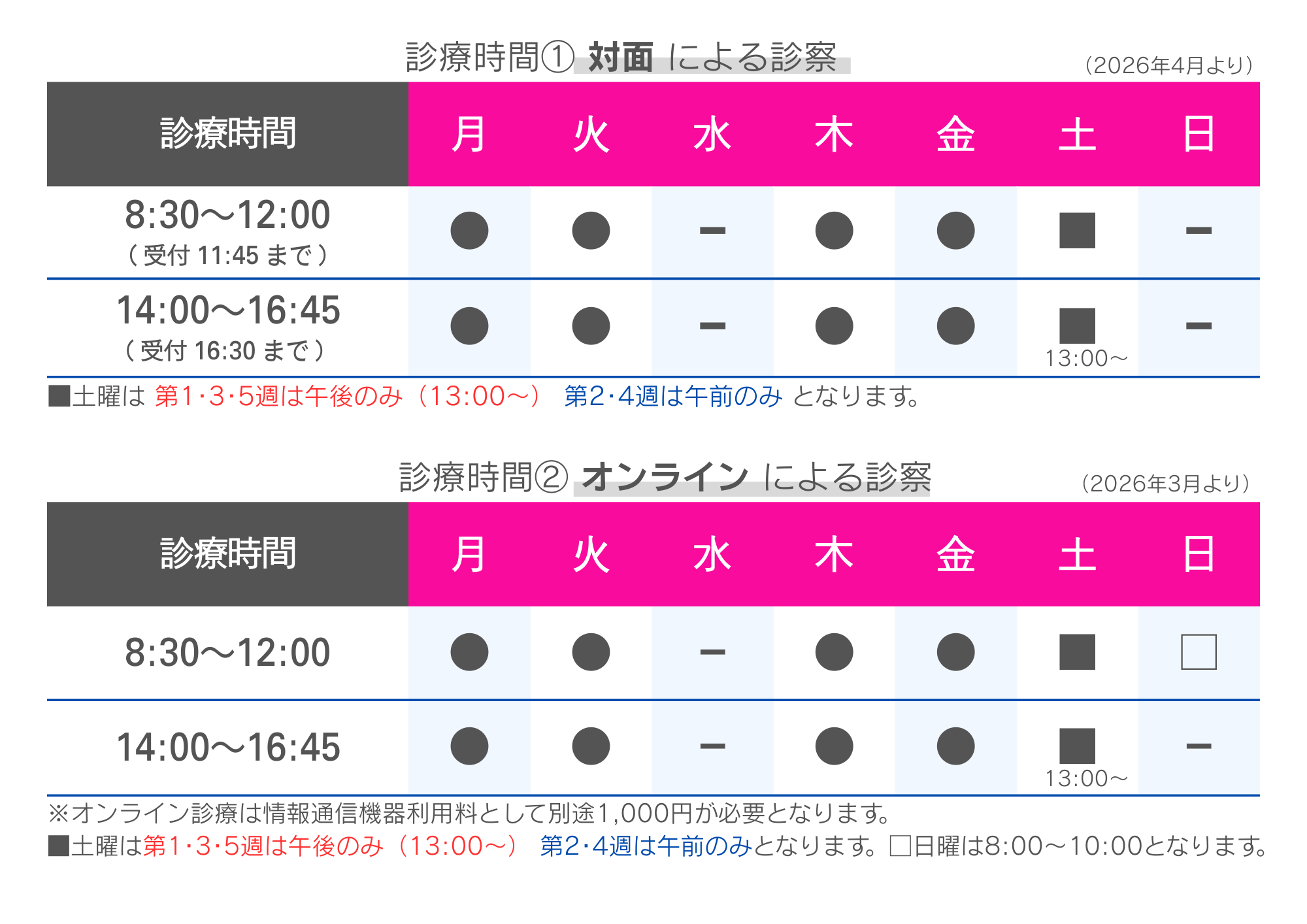 - オンライン診療時間が変わりました [2025.10.31更新]